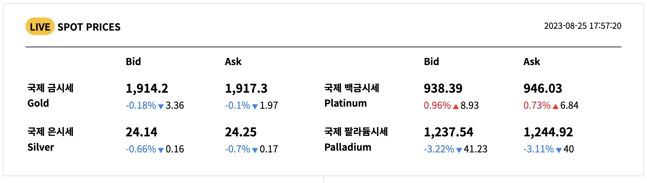 오늘의 금 시세 (23. 8. 26. 토요일)