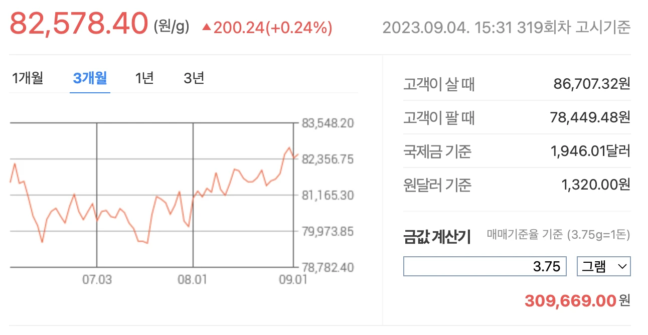 * 금거래소에서 9월 4일 종료 기준입니다 (3.5g)