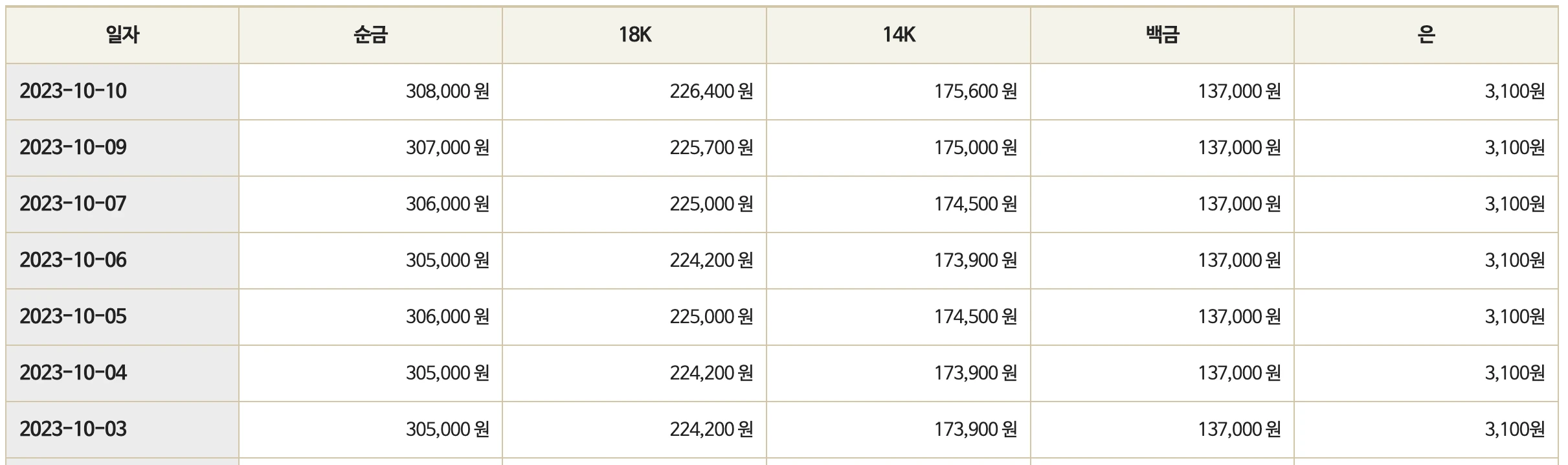 | 순금 | 308,000 원 | 307,000 원 | + 1,000 원 |