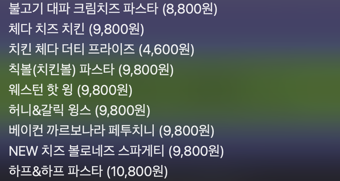 - 불고기 대파 크림치즈 파스타 : 8,800원