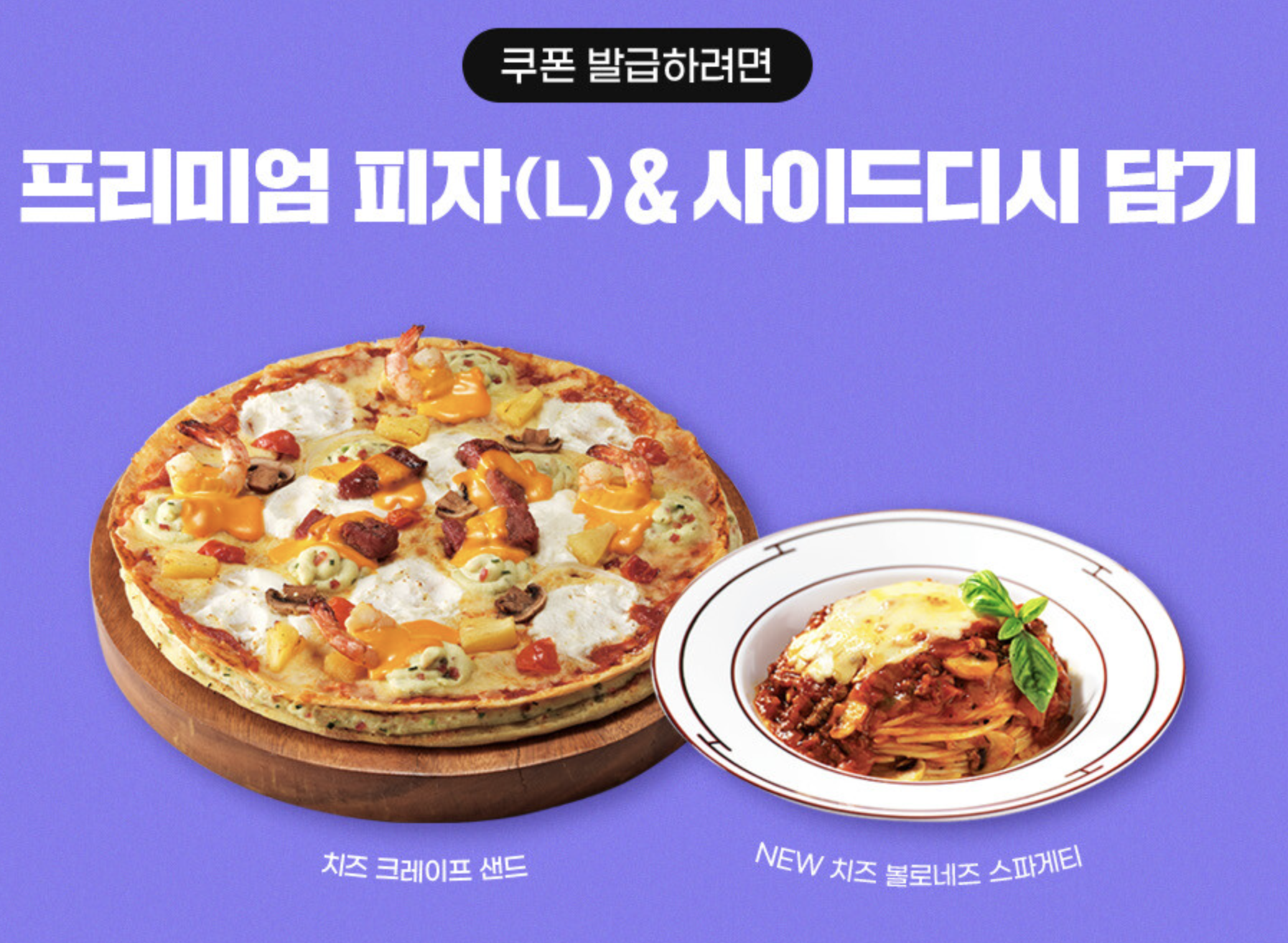 - 프리미엄 피자(L), 사이드디시 구입 시 쿠폰 사용 가능