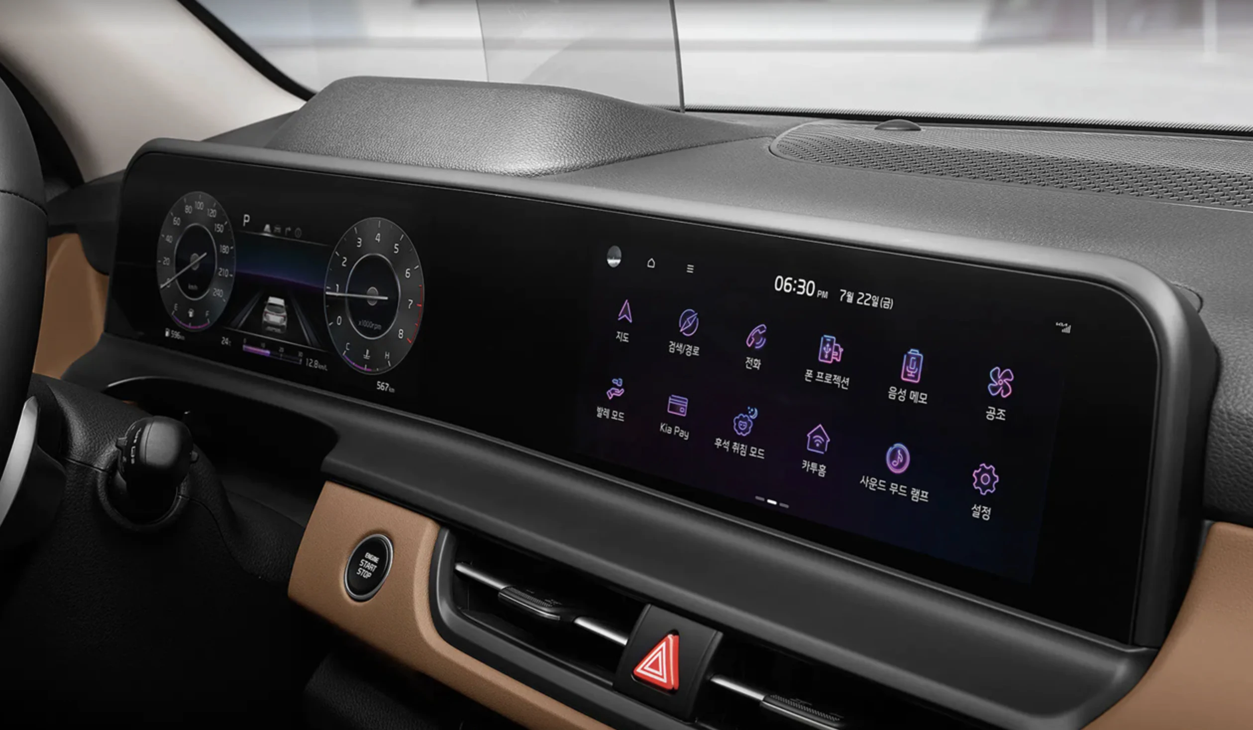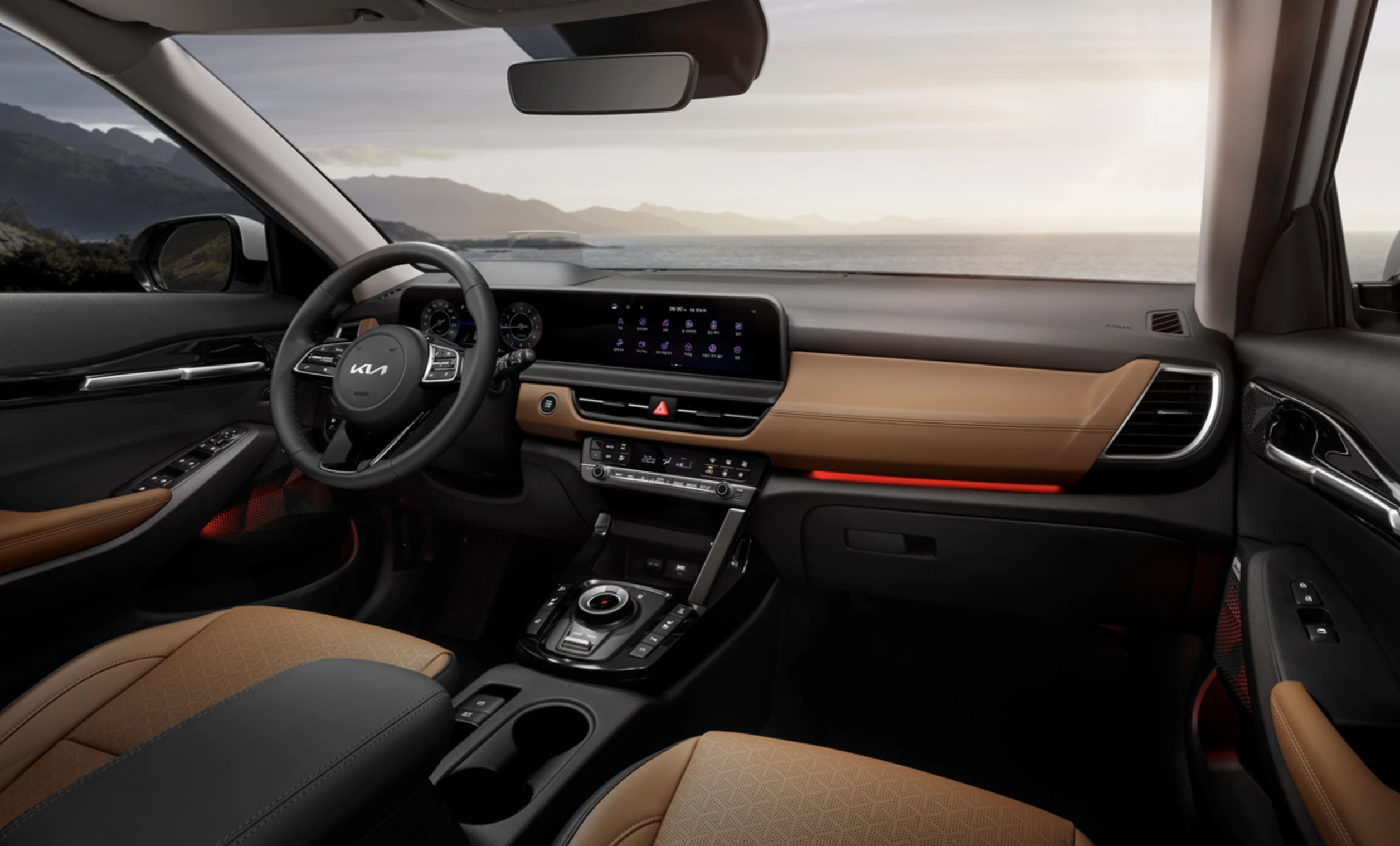 기아는 연식 변경된 2024년 셀토스에 운전자 디스플레이와 인포테인먼트 디스플레이를 모두 하나의 단위로 표시하는 새로운 파노라마 디스플레이를 장착했습니다.