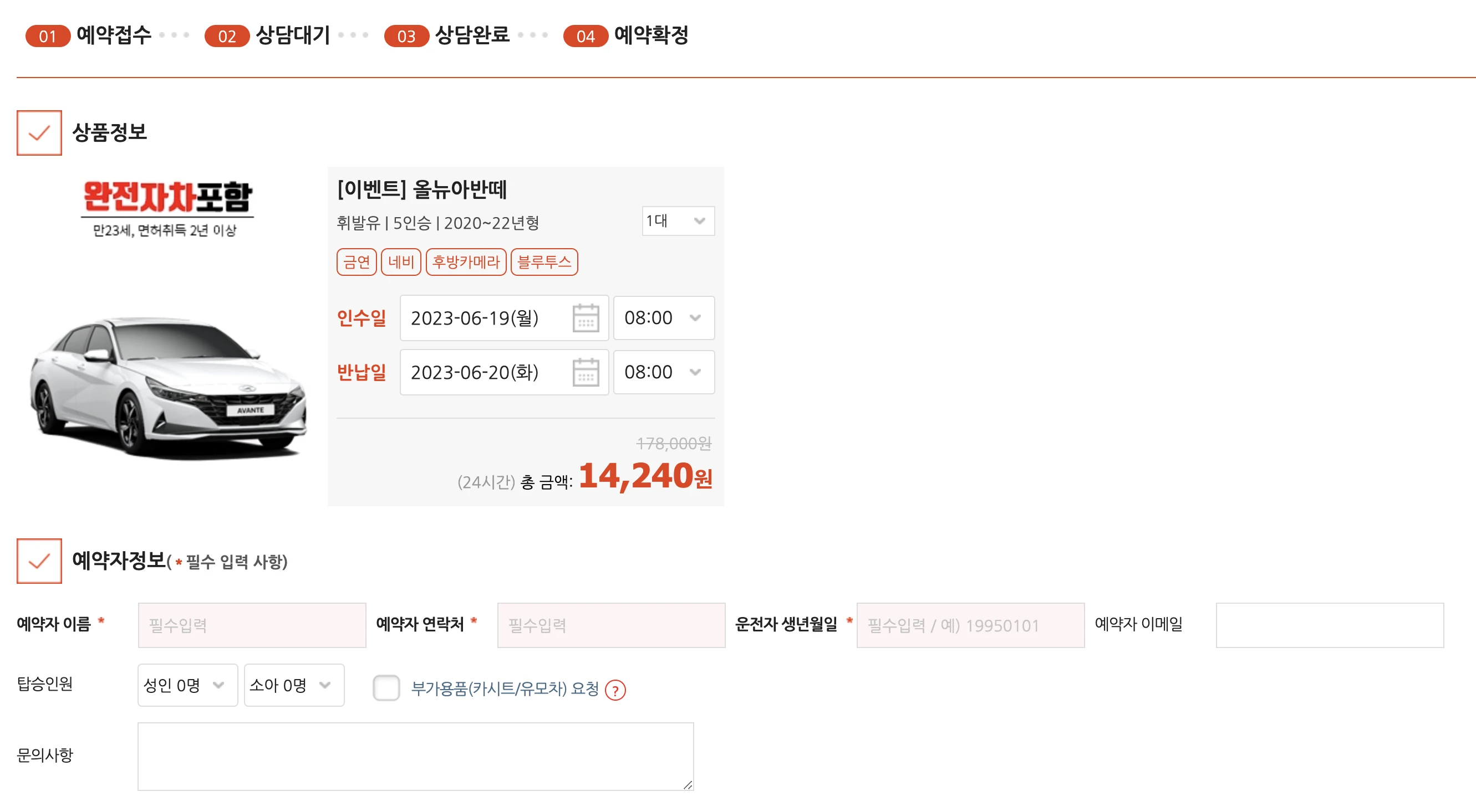 렌트카 예약자정보는 필수 입력 사항으로 실제 운전자의 정보를 입력해야 합니다. 해당 렌트카에 다른 운전자 등록도 가능한 점 참고해 주시면 좋을 것 같습니다.