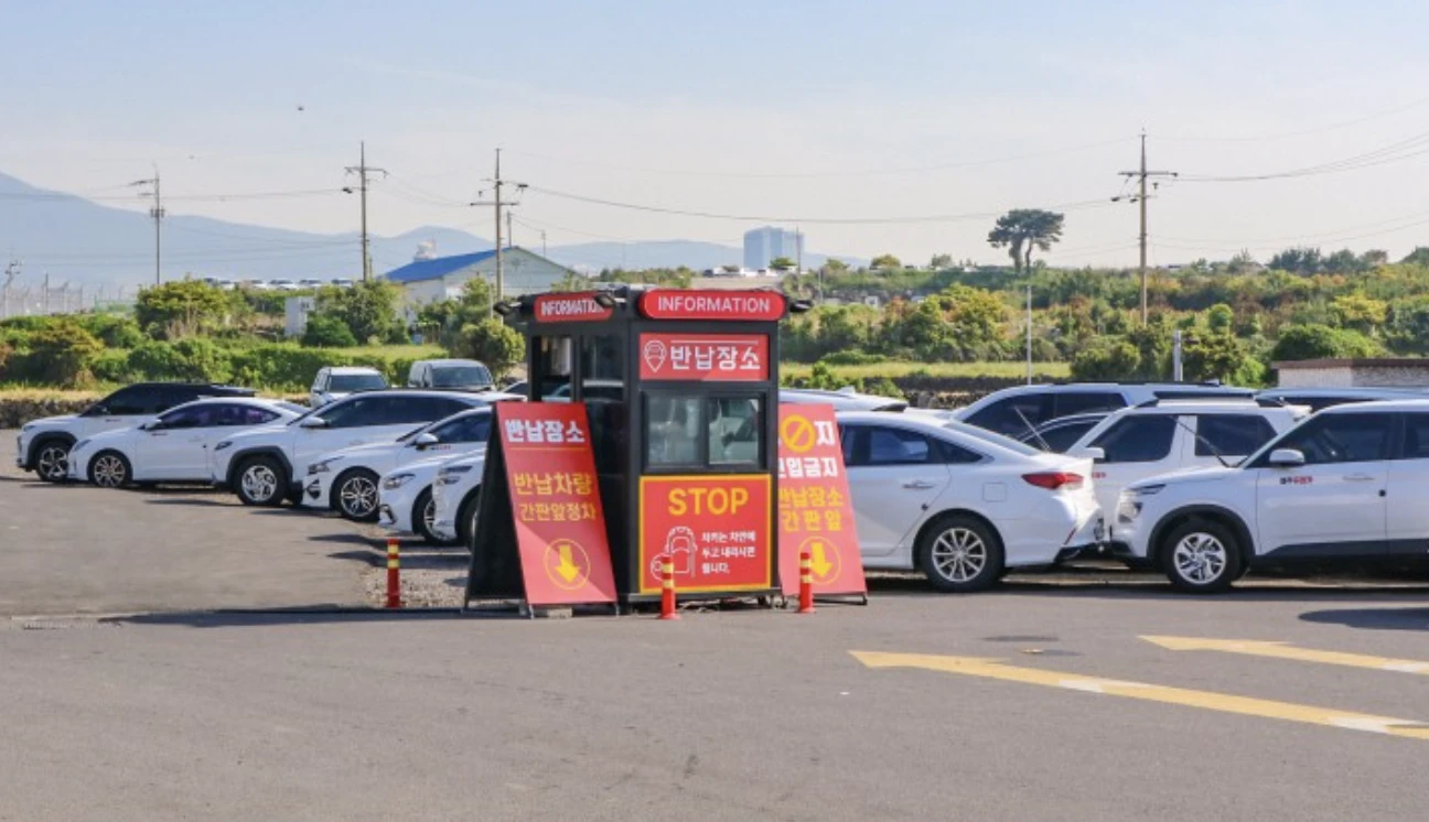 제주유레카 렌트카 업체는 제주공항에서 가까운 용두암 부근에 위치해 있으며, 공항에서 대기 후 셔틀버스를 타고 이동할 수 있게 되어있습니다. 대부분의 렌트카 셔틀버스 대기장소는 주차장 파리바게트 쪽에 위치해 있습니다.