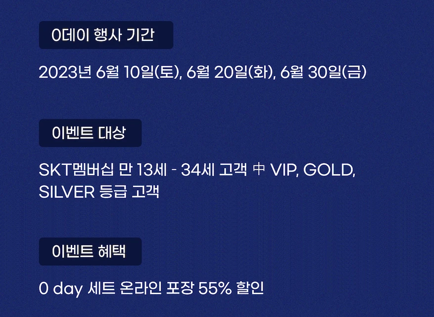 6월 0day 행사기간 : 2023년 6월 10일(토), 6월 20일(화), 6월 30일(금)