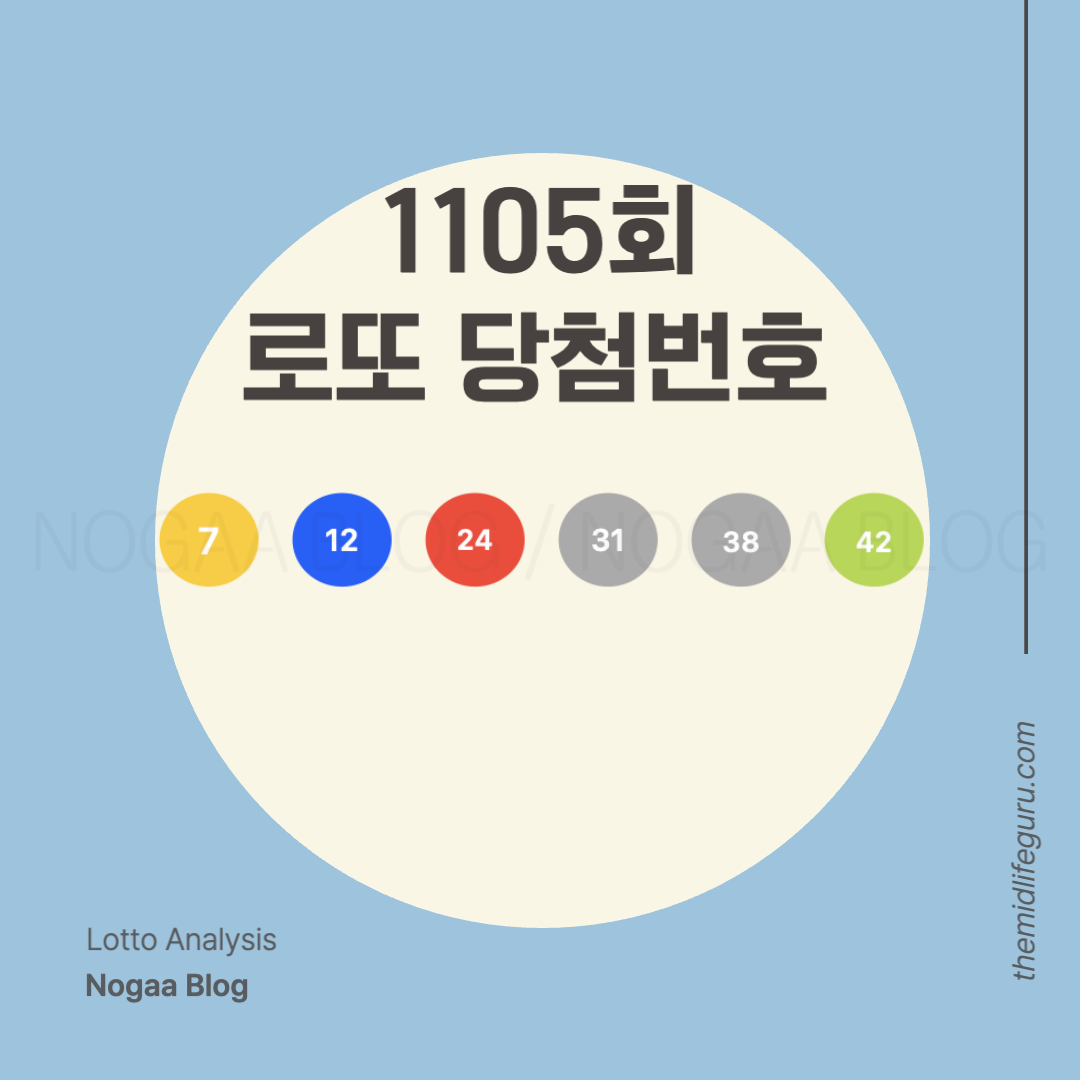 본 글에서 작성한 이번주 로또 1등 예상번호는 4가지 항목의 분석을 통해 나온 번호입니다. 1105회차 분석 번호는 바로 아래에서 확인할 수 있으며, 왜 이런 번호가 나왔는지는 본문을 확인하시기 바랍니다.
