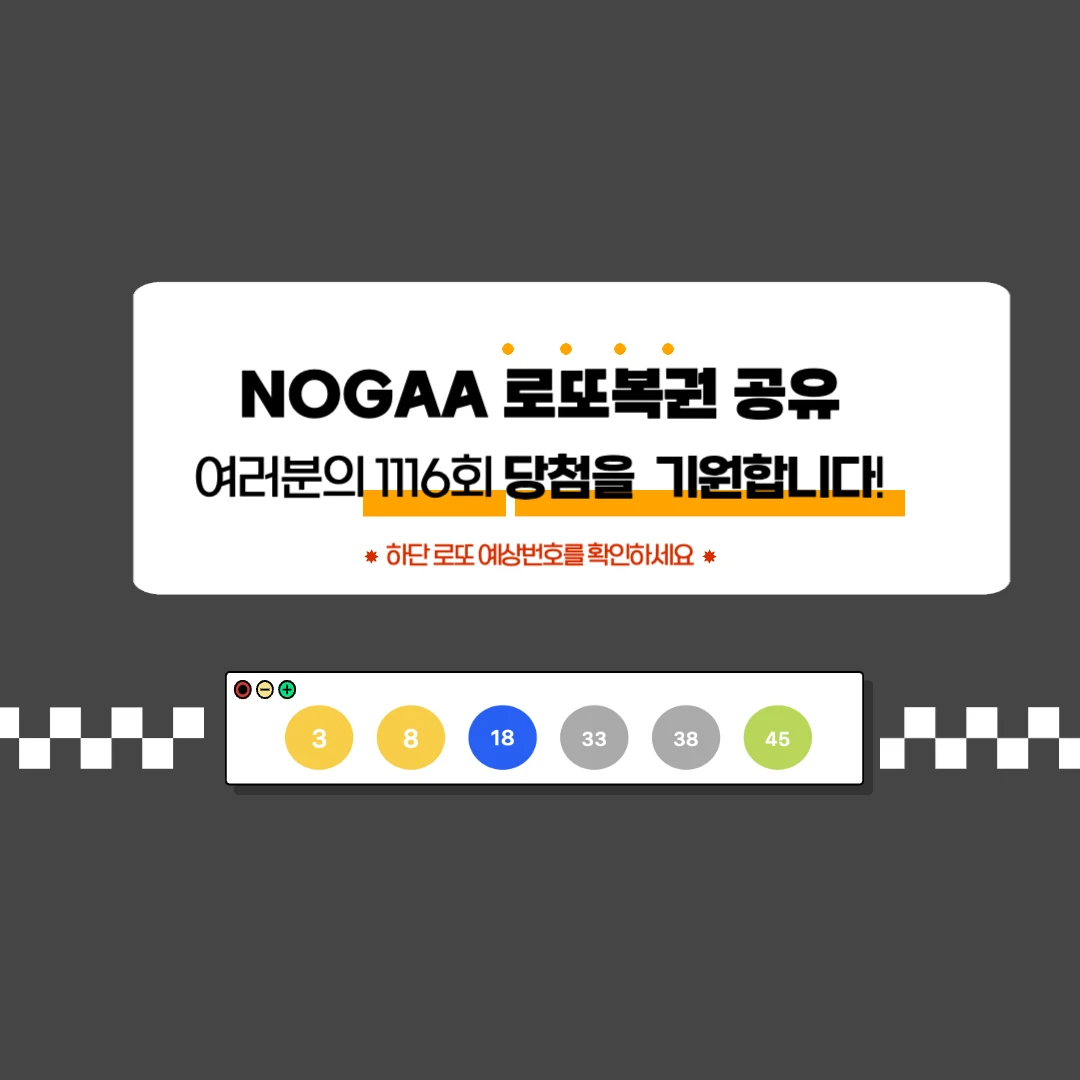 2024년 4월 20일 토요일에 발표되는 1116회 로또 당첨번호에 대한 분석 결과는 아래와 같습니다. '로또 예상번호 눌러서 확인'을 클릭하면 번호를 확인할 수 있습니다.