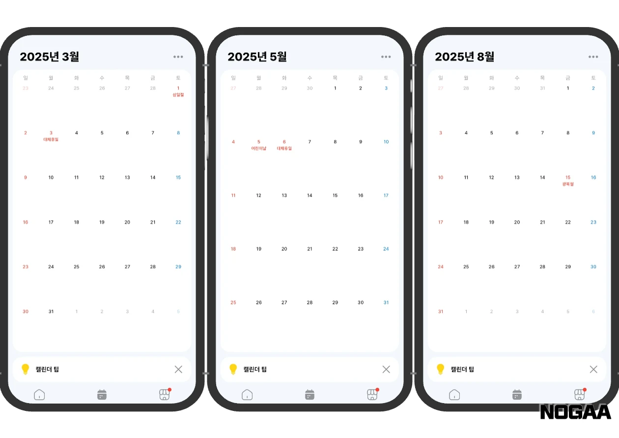 만약 핸드폰으로 스케줄 관리를 선호하는 분이라면, 플래닛(PLANIT)이라는 어플을 추천드립니다. 이 앱을 통해 공휴일과 개인 일정을 한 번에 관리할 수 있어 매우 편리합니다.